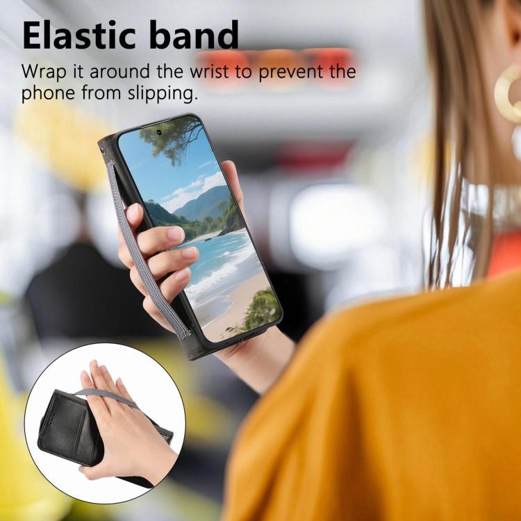 Funda de cuero con correa elástica y ventosa magnética para iPhone 17 Pro Max (negra)