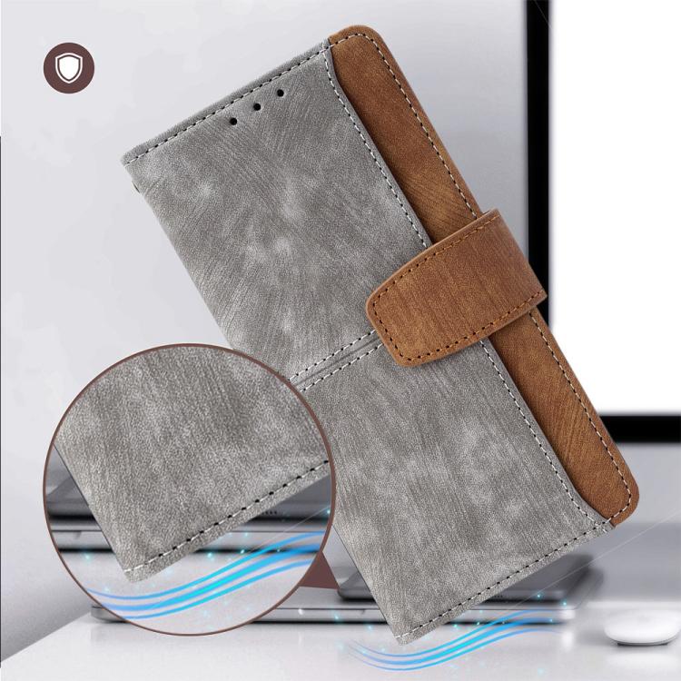 Funda de cuero con costuras de color y tacto suave para iPhone 17 (gris)