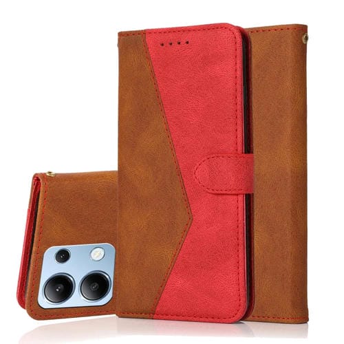 Funda de Cuero con Costuras de Dos Colores para Redmi Note 13 4G (Marrón y Rojo)