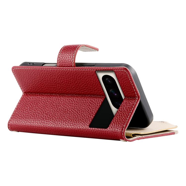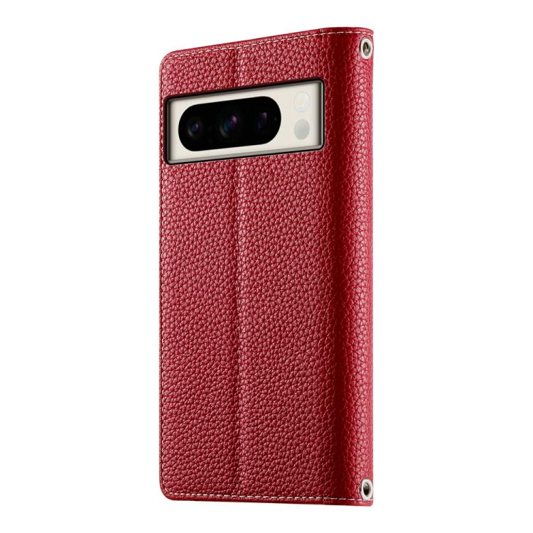 Funda de cuero con cremallera para Google Pixel 8 Pro, con múltiples tarjetas, costuras y correa corta (roja)