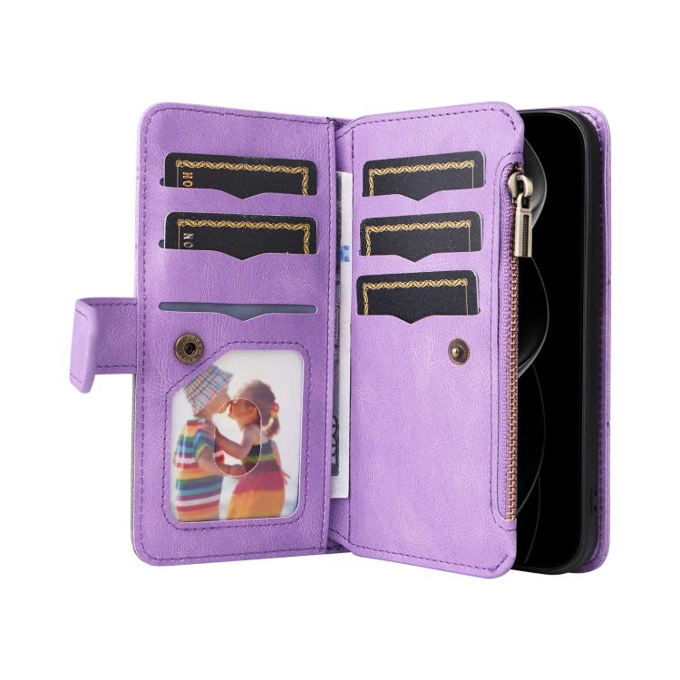 Funda de cuero con cremallera para iPhone 17 Pro Max, bicolor, con 9 ranuras para tarjetas (morado)