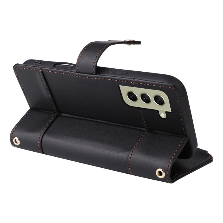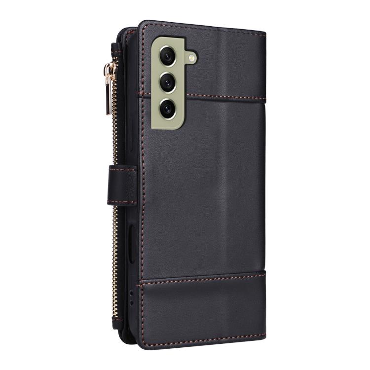 Funda de cuero con cremallera y bloqueo RFID para Samsung Galaxy S21 FE 5G (negro)