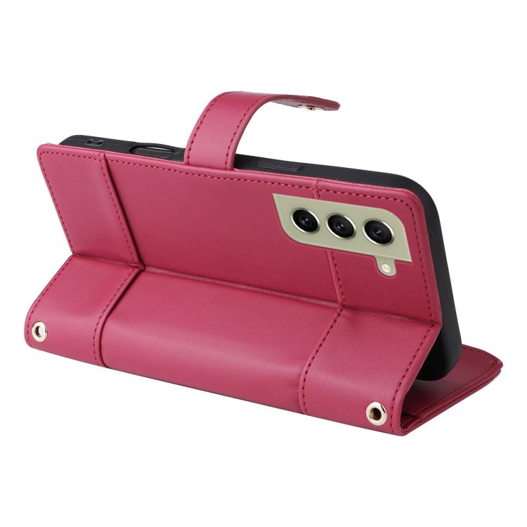 Funda de cuero con cremallera y bloqueo RFID para Samsung Galaxy S21 FE 5G (rojo)