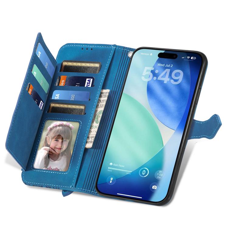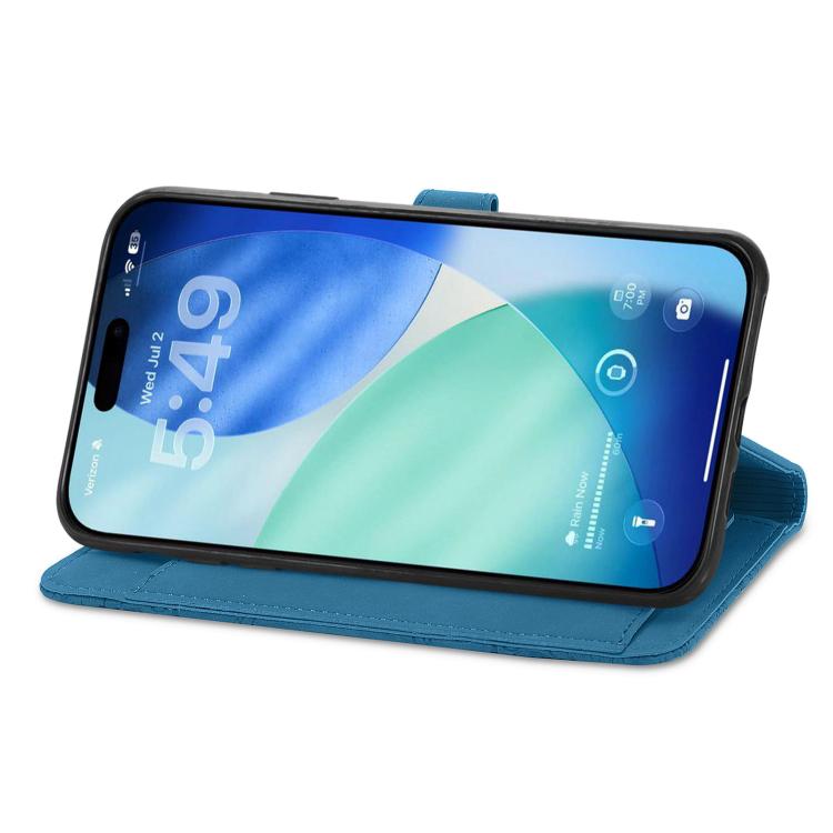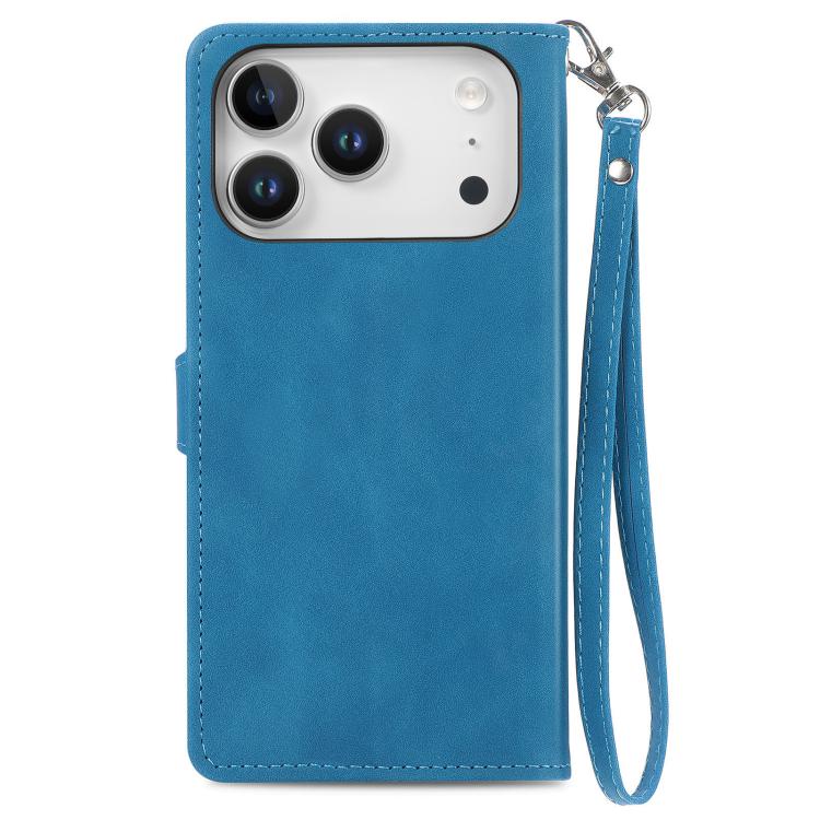 Funda de cuero con cremallera y diseño floral en relieve para iPhone 17 Pro Max (azul)