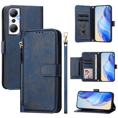 Funda de Cuero con Cremallera y Ranuras para Tarjetas para Infinix Hot 20 4G (Azul)