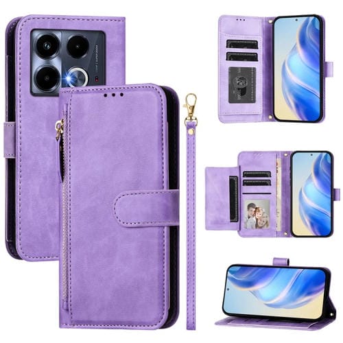 Funda de Cuero con Cremallera y Ranuras para Tarjetas para Infinix Note 40 5G (Morado)