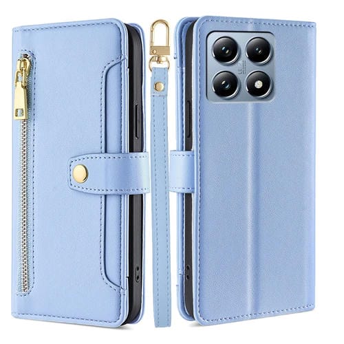 Funda de Cuero con Cremallera y Textura de Oveja para Xiaomi 14T Pro 5G (Azul)
