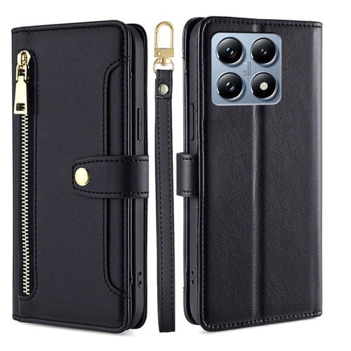 Funda de Cuero con Cremallera y Textura de Oveja para Xiaomi 14T Pro 5G (Negra)