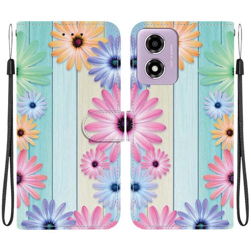 Funda de Cuero Motorola Moto G04S/E14 con Dibujo de Colores y Textura de Cristal (Girasoles)