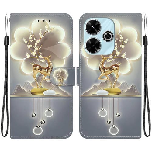 Funda de Cuero con Dibujo de Colores y Textura de Cristal para Redmi 13 4G/Poco M6 (Ciervo Sika)