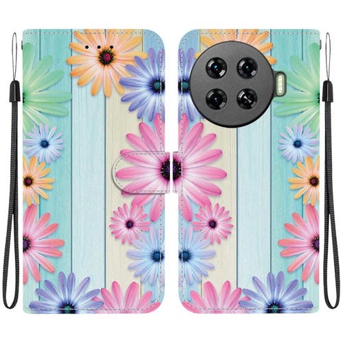 Funda de Cuero para Tecno Spark 20 Pro+ 4G con Dibujo de Colores y Textura de Cristal (Girasoles)