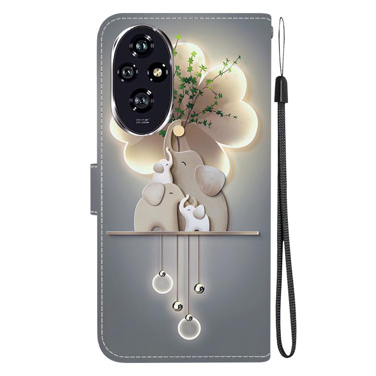 Funda de Cuero con Dibujo y Textura de Cristal para Honor 200 5G (Elefantes)