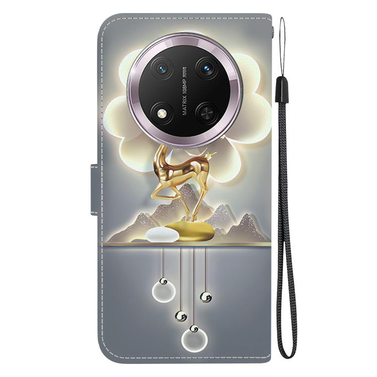 Funda de Cuero para Honor X9C con Dibujo de Ciervo Sika y Textura de Cristal