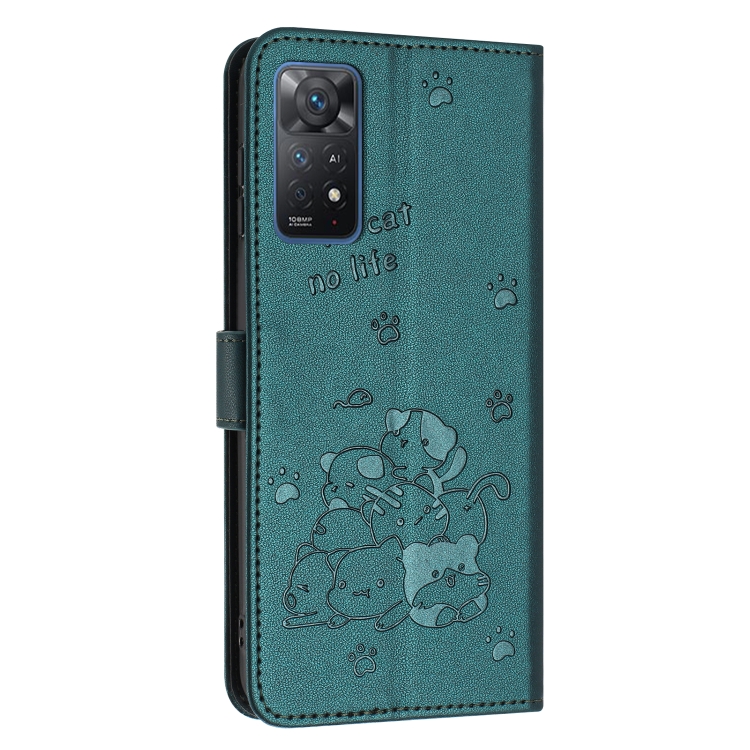 Funda de Piel con Diseño de Gatito En Relieve para Redmi Note 12 Pro 4G con Cordón (Verde Oscuro)
