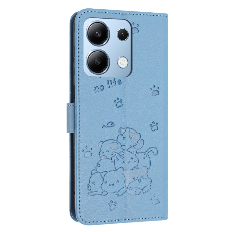 Funda de Cuero con Estampado de Gatito y Cordón para Redmi Note 13 4G (Azul)