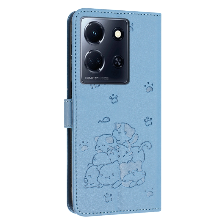 Funda de Cuero Infinix Note 30 Note 30 5G Diseño Gatito En Relieve con Cordón (Azul)