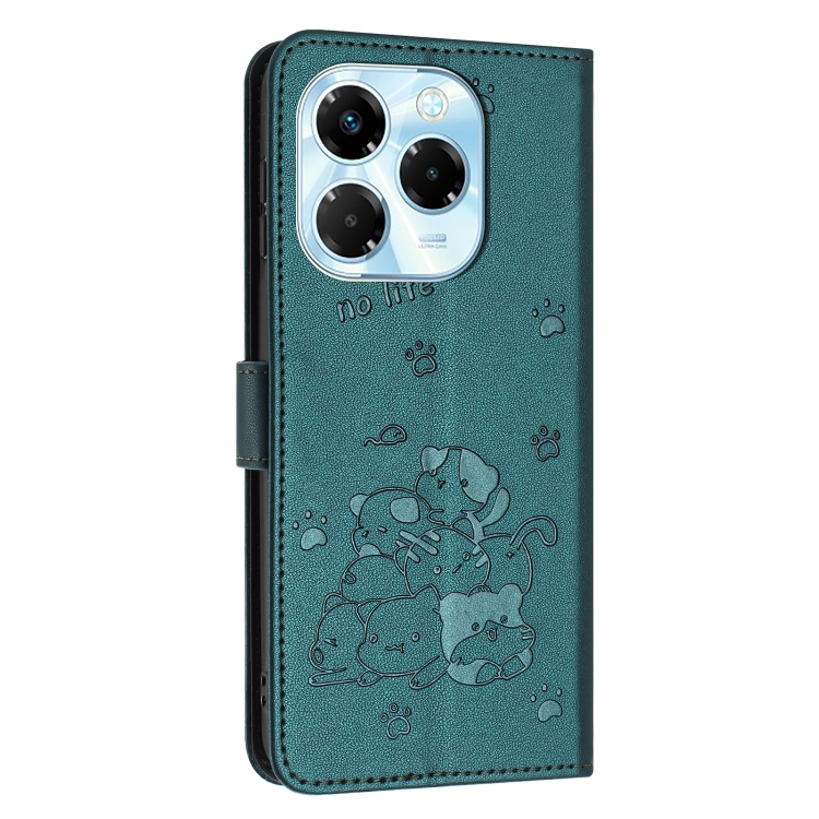 Funda de Cuero Infinix Note 40X 5G con Diseño de Gatito en Relieve y Cordón (Verde Oscuro)