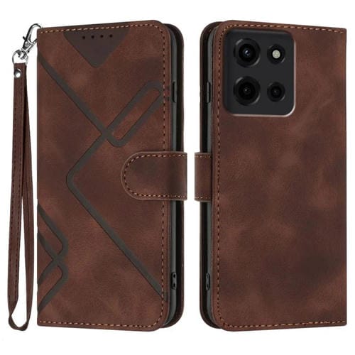 Funda de Cuero para Motorola Moto G 2025 con Diseño de Líneas y Tacto Suave (Café)