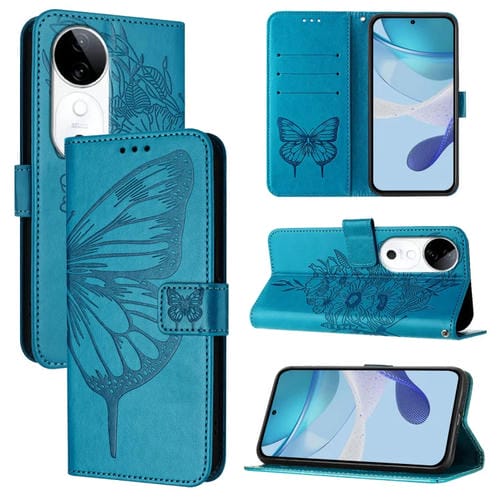 Funda de Cuero con Diseño de Mariposa En Relieve para El Teléfono Vivo S19 (Azul)