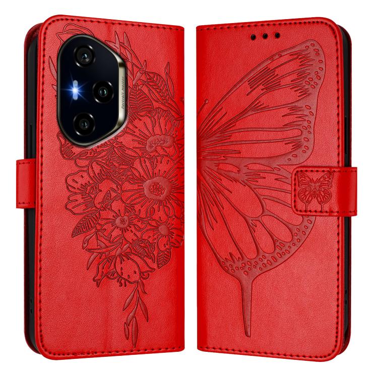 Funda de Cuero para Honor 400 con Diseño de Mariposa en Relieve (Roja)