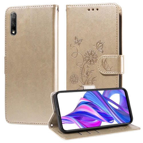 Funda de Cuero para Honor Magic4 Lite 5G/4G/X40 Gt con Diseño de Mariposas y Flores en Relieve (Dorada)
