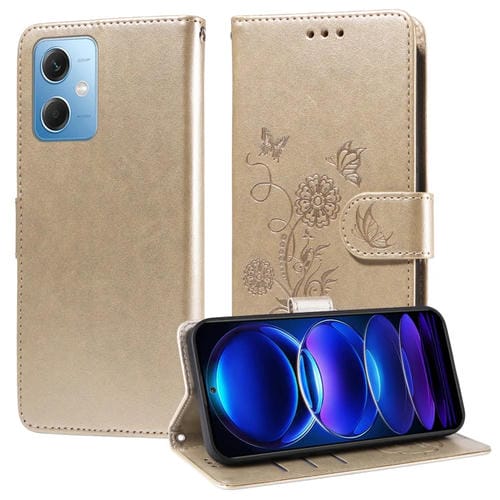 Funda de Cuero con Diseño de Mariposas y Flores En Relieve para Xiaomi Poco X5 5G (Dorada)
