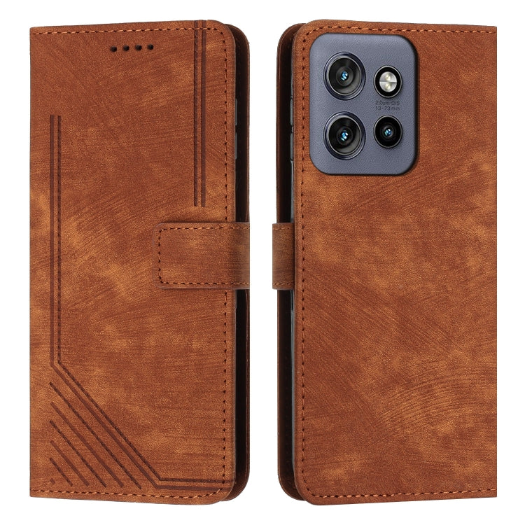 Funda de Cuero Motorola Edge 50 Neo con Diseño de Rayas y Cordón (Marrón)