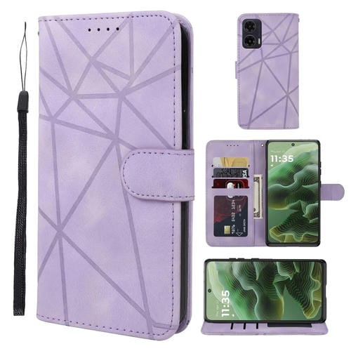 Funda de Cuero Motorola Moto G35 con Diseño Geométrico y Líneas (Morado)