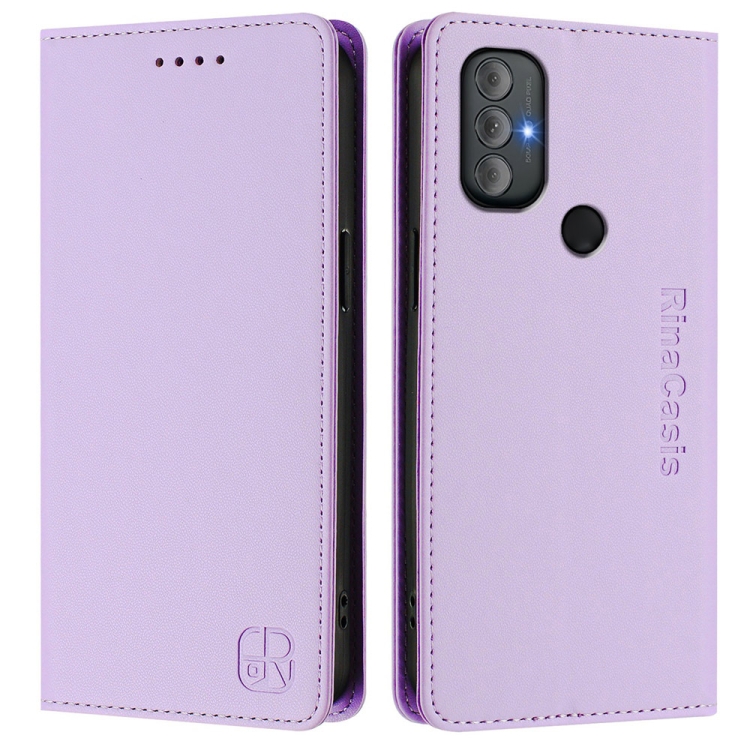 Funda de Cuero Motorola Moto G Power 2022 Rc01 con Doble Pliegue y Succión Magnética (Morado Claro)