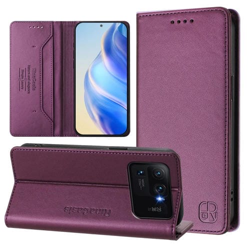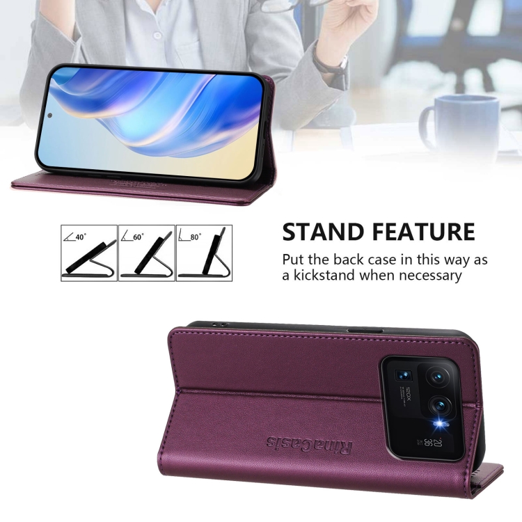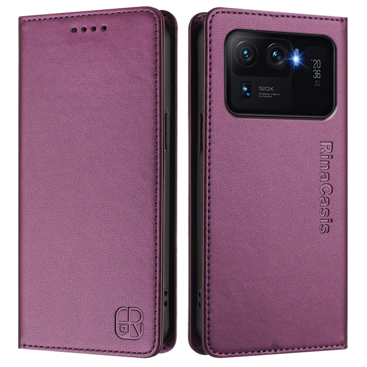 Funda de Cuero con Doble Pliegue y Succión Magnética para Xiaomi Mi 11 Ultra Rc01 (Violeta)