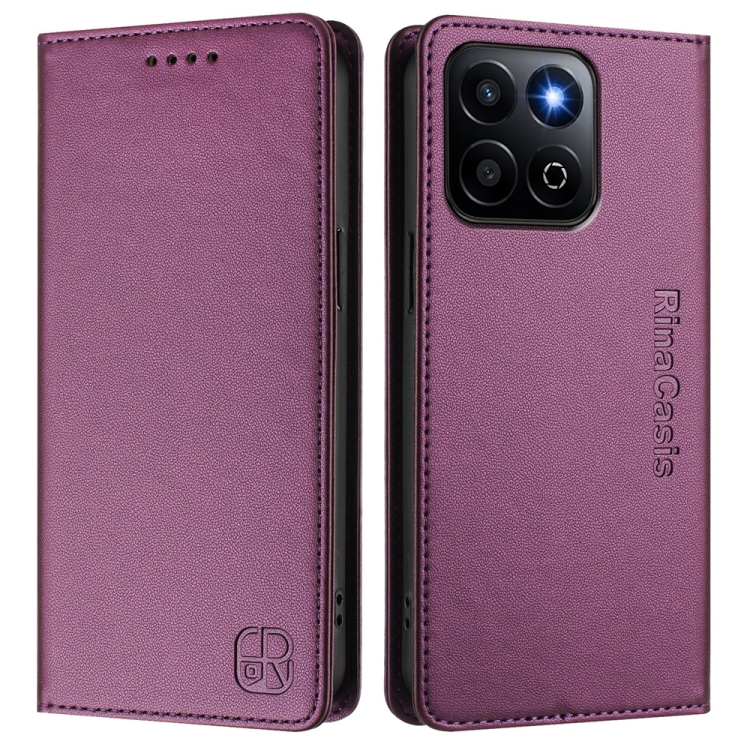 Funda de Cuero para Honor 200 Smart Global X7C 4G Rc01 con Doble Pliegue y Succión Magnética Rfid (Violeta)