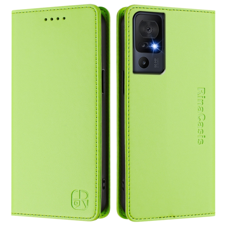 Funda de Cuero con Doble Pliegue y Succión Magnética RFID para TCL 40 SE RC01 (Verde Hierba)