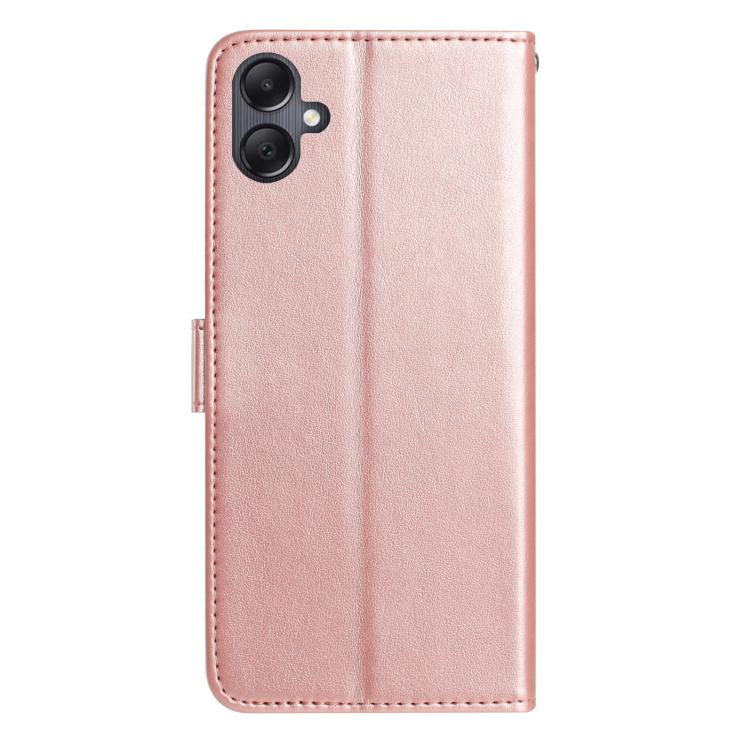 Funda de cuero con estampado floral en relieve para Samsung Galaxy A06 (oro rosa)
