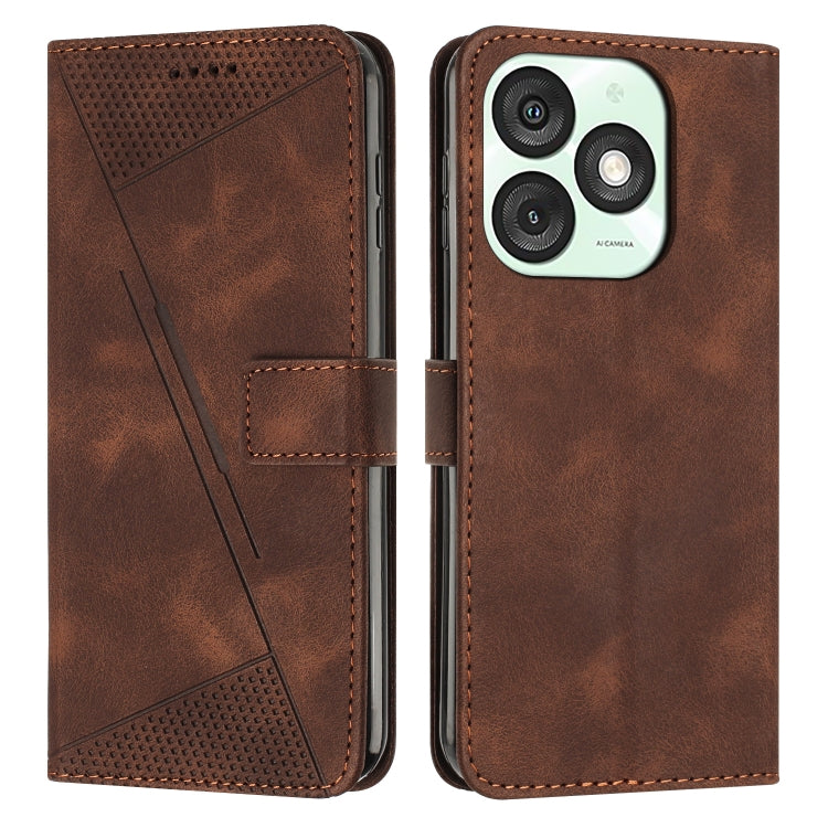Funda de Cuero Triangular para Teléfono Itel A50 Dream con Cordón Largo (Marrón)