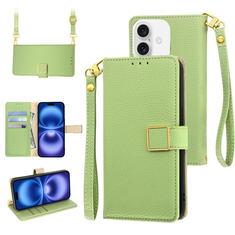 Funda de Cuero iPhone 16 Hebilla Cuadrada Textura Lichi (Verde)
