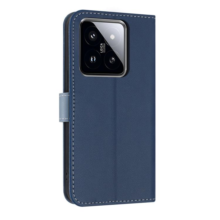 Funda de cuero con lazo metálico y correa para la mano para Xiaomi 14 Pro (azul oscuro)