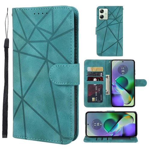 Funda de Cuero para Motorola Moto G54 con Líneas Geométricas y Tacto Suave (Verde)