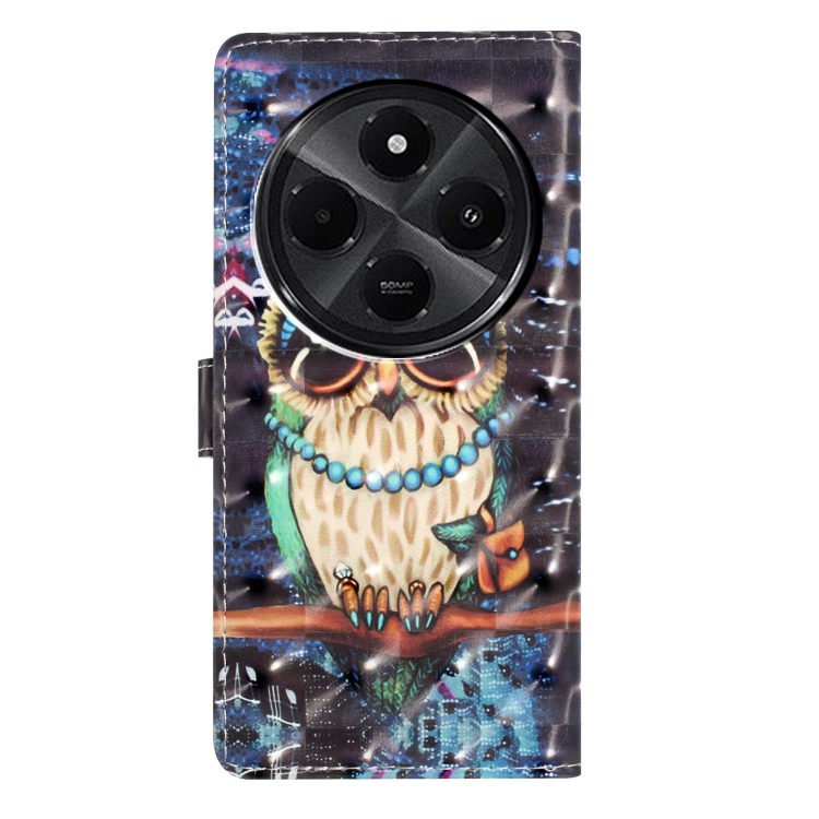 Funda de Cuero con Patrón 3D para Redmi A4 5G (Búho de Ojos Grandes)