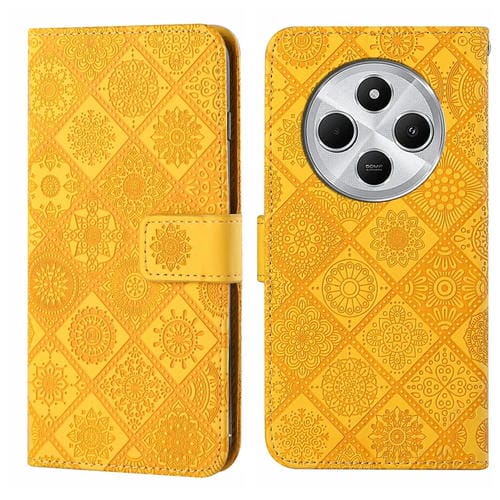 Funda de Cuero con Patrón En Relieve de Estilo Étnico para Redmi 14C 4G (Amarillo)
