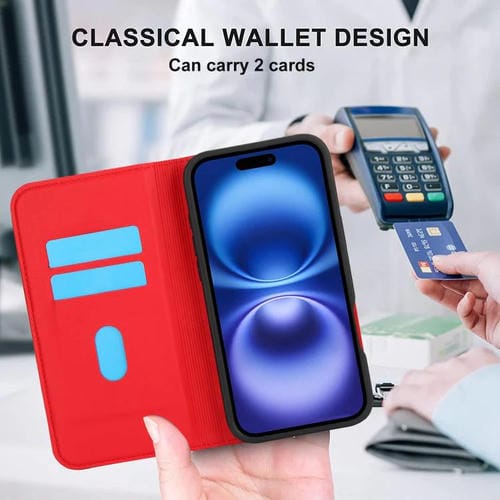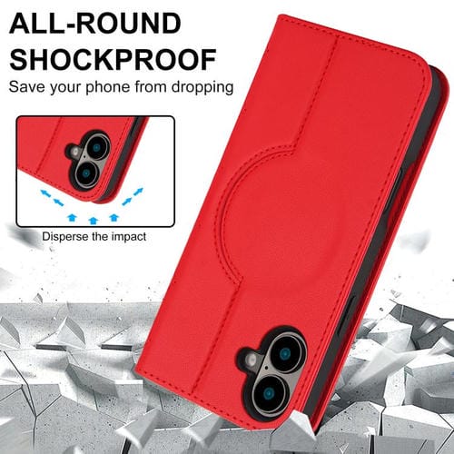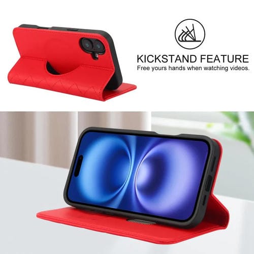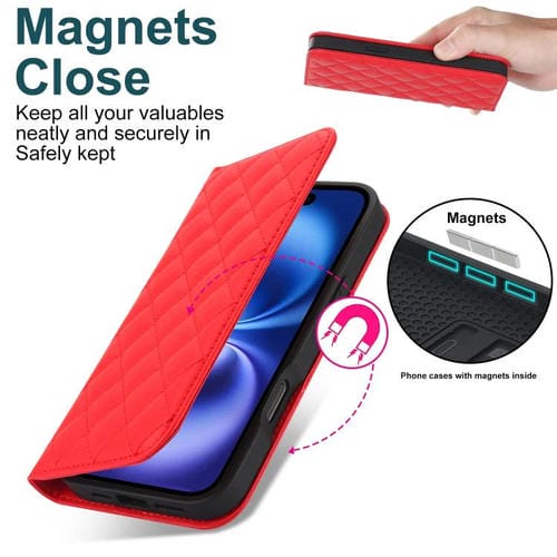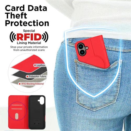 Funda de cuero con protección RFID antirrobo Rhombic MagSafe para iPhone 17 (roja)