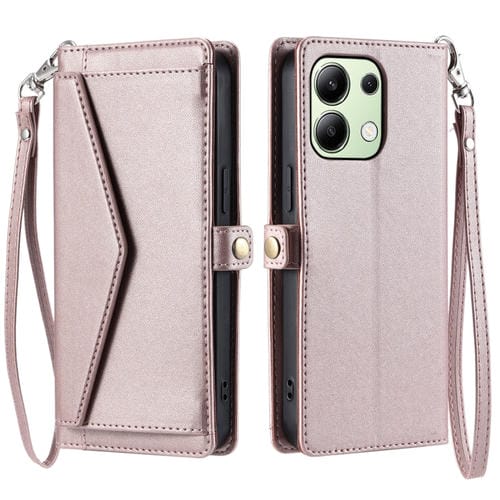 Funda de Cuero con Ranura para Múltiples Tarjetas y Billetera Global para Redmi Note 13 4G con Cordón (Oro Rosa)