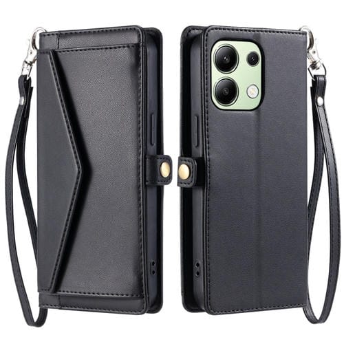 Funda de Cuero con Ranura para Múltiples Tarjetas y Cordón para Redmi Note 13 4G Global Wallet (Negro)