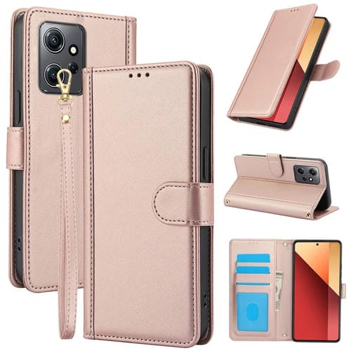 Funda de Cuero con Ranuras para Tarjetas y Tacto de Piel Global para Redmi Note 12 4G con Cordón Doble (Oro Rosa)