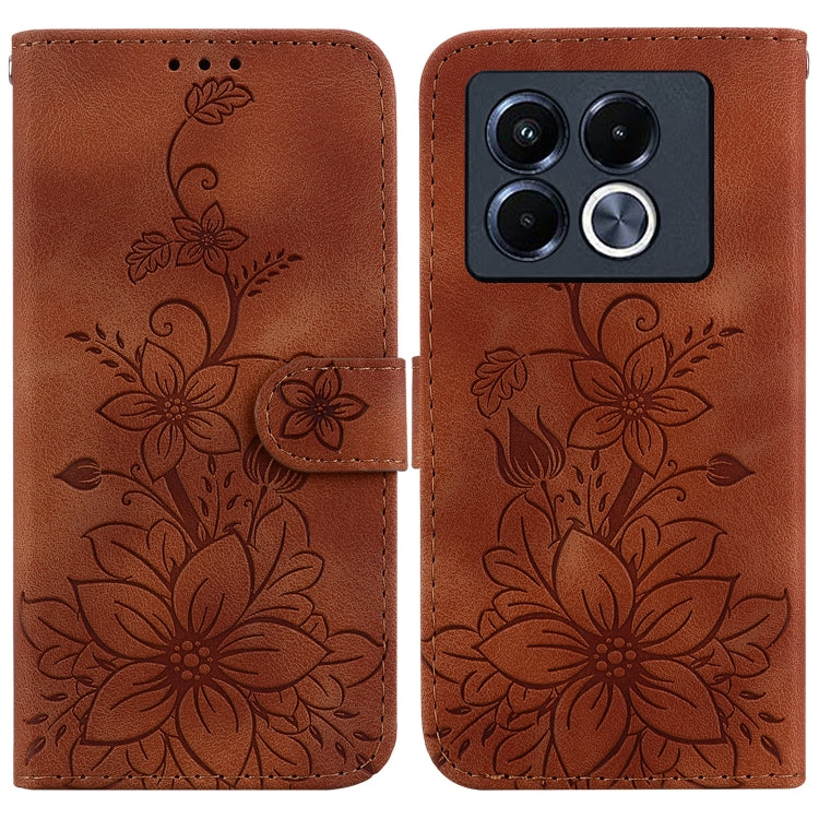 Funda de Cuero con Relieve de Lirio para Infinix Note 40 5G (Marrón)