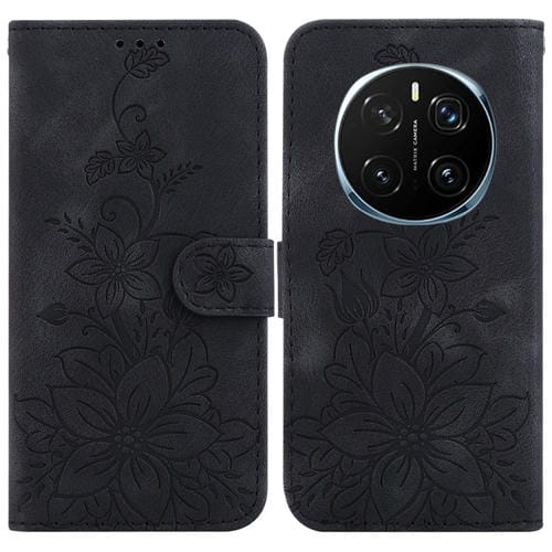 Funda de Cuero con Relieve de Lirio para Honor Magic7 Pro (Negra)
