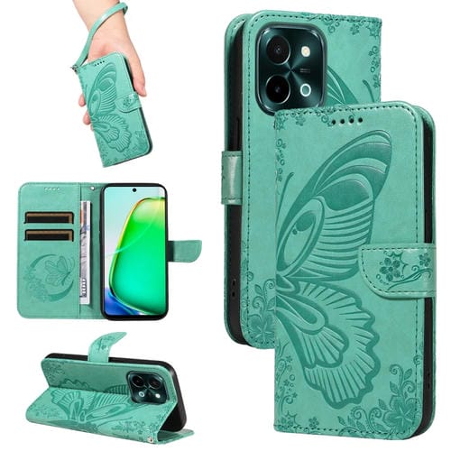Funda de Cuero con Relieve de Mariposa para Vivo Y28 4G (Verde)