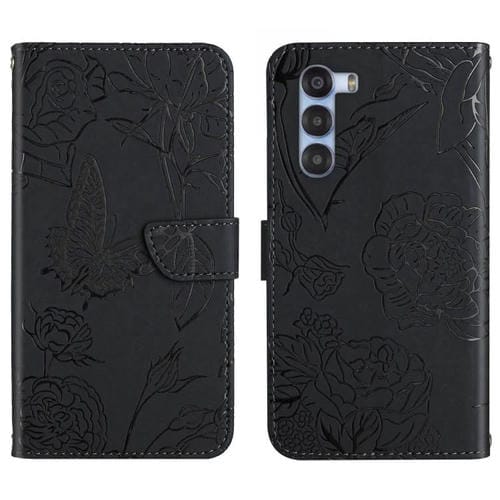 Funda de Cuero para ZTE Nubia S 5G A403Zt con Relieve de Peonía y Mariposa (Negro)