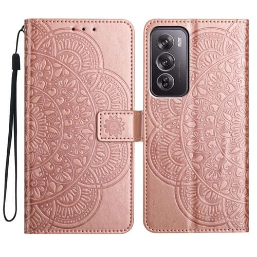 Funda de Cuero con Relieve Floral para Oppo Reno12 Pro (Oro Rosa)