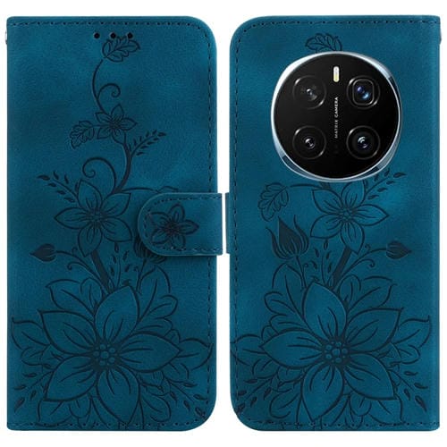 Funda de Cuero con Relieve de Lirio para Honor Magic7 Pro (Azul Oscuro)