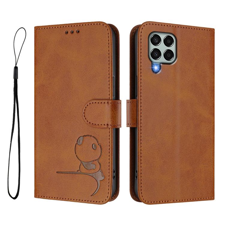 Funda de cuero con relieve RFID y cordón para Samsung Galaxy M33 5G (marrón)
